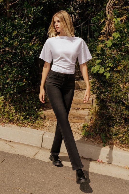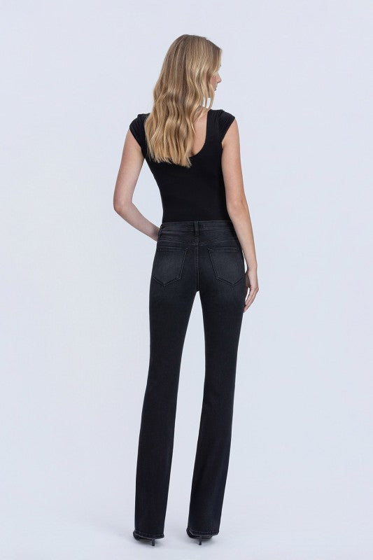 High rise full length black bootcut jeans. LV1559BK